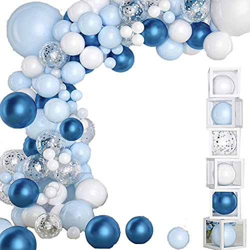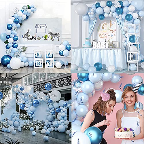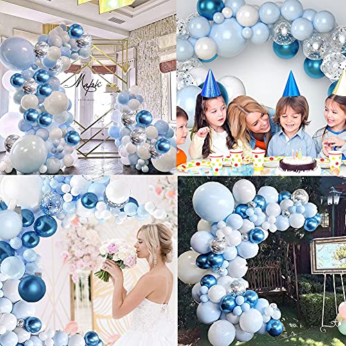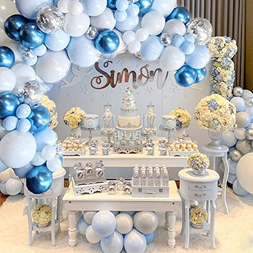 JINCHENG 107 pcs Ghirlanda Di Palloncini Blu,Palloncini Blu Bianchi, Palloncini Coriandoli Argento,Palloncini Blu Metallizzati per Baby Shower,Compleanno, Matrimonio e Decorazioni per Feste