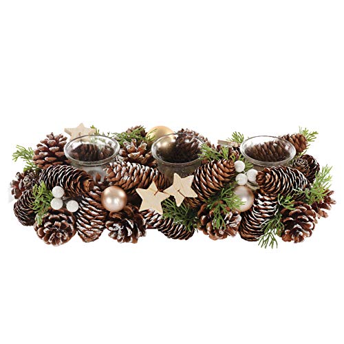 Jingles Delux Christmas Table Centrepiece Pine Cone vestito 3 vasetti di vetro portacandele