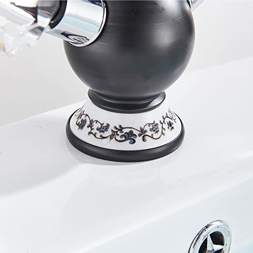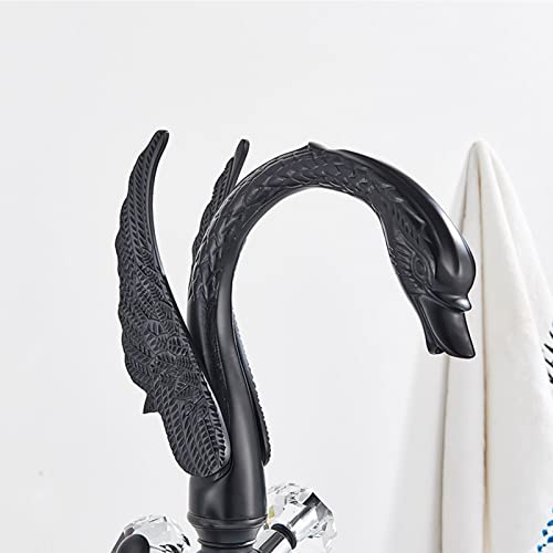 Jings Rubinetto per bagno a forma di cigno, rubinetto per lavabo in ottone, rubinetto per lavabo con montaggio su piattaforma a doppia maniglia, miscelatore per acqua calda e fredda,Nero
