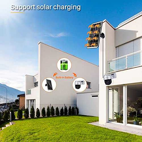 Jings Telecamera Solare Esterna, 2MP PIR Human Detect WiFi PTZ Camera Solar Power Battery Telecamera IP Telecamera di Sicurezza Wireless Audio bidirezionale