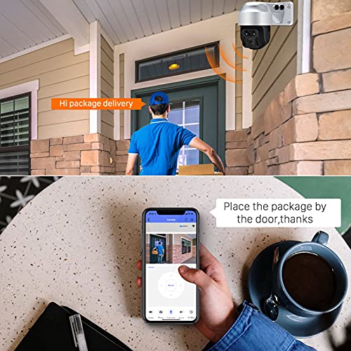 ★ Controllo remoto PTZ ovunque: visualizza più dettagli o più oggetti senza sacrificare la qualità. La telecamera con un'inclinazione orizzontale di 355° e una verticale di 90° può spostarsi in alto, in basso, a sinistra e a destra.