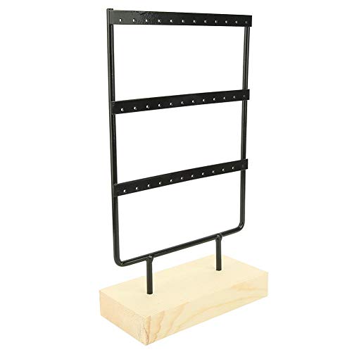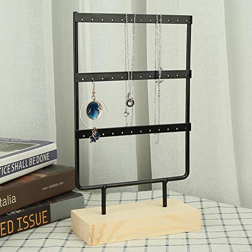 Jingyi Porta Gioielli, 36 Fori Portaoggetti per Gioielli in Metallo Espositore per Orecchini Organizzatore per Collana con Base in Legno(Nero)
