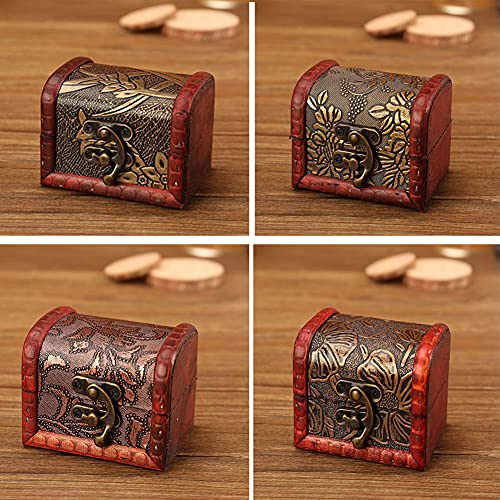 Jingying Legno Scrigno del Tesoro, 4 Pezzi Mini Scrigno del Tesoro, Scrigno del Tesor, Pirati Scrigno del Tesoro, Può Essere Utilizzato per Conservare e Proteggere Gioielli Regalo