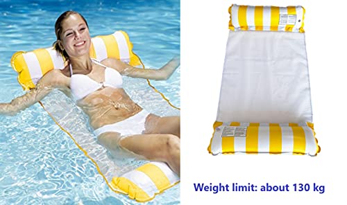Jingyukj Amaca Gonfiabile Piscina,Materasso ad Acqua 4 in 1 Letto Galleggiante,per Piscina,Spiaggia,Giardino,Galleggiante Gonfiabile Pieghevole Letto Lounge (Giallo)