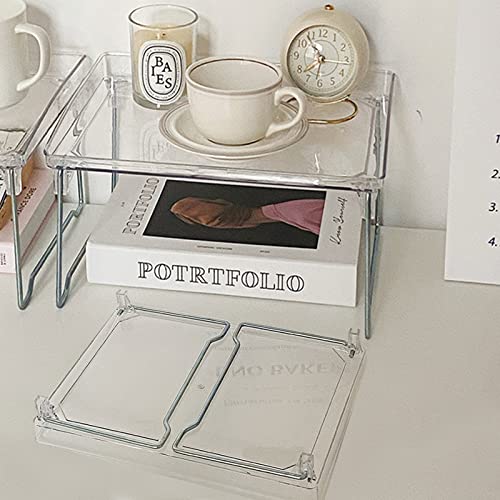 Jingzhan Organizzatore per Credenze, Mensole Porta Piatti Impilabili, Ripiano Salvaspazio Cucina, per Cucina, Bagno, Organizer per Trucchi, PET e Metallo, Trasparente e Cromato