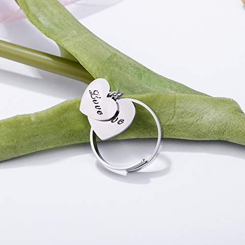 JinHan - 2Pcs Anello da donna a forma di cuore, anello alla moda, ricco di zirconi cubici, regolabile, anallergico, regalo di compleanno per ragazze