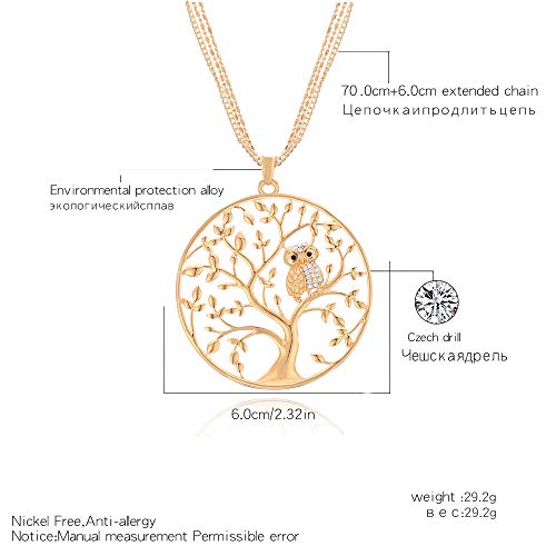 JinHan Collana Albero della Vita, Collana Gufo, Collana Moda Donna,Ricco di intarsi in Cristallo di zirconi, Materiale antiallergico, Meravigliosa Scelta Regalo di Compleanno