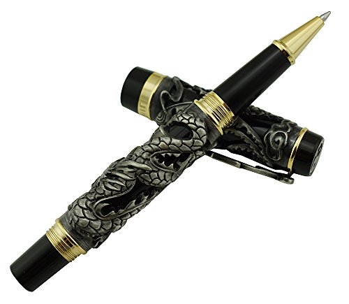 Jinhao Dragon Phoenix vintage nero penna a sfera con clip Lucky, pesante grande 105 g con penna sacchetto