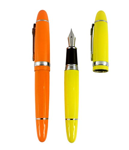 2 pz. Jinhao 159 penne stilografiche di grandi dimensioni in 2 colori (arancio, giallo) con tasca trasparente