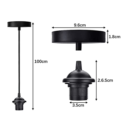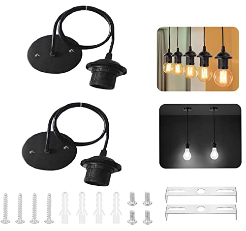 JINJUMEI 2 PCS E27 Lampade a Sospensione Accessori, Retro Plafoniere Lampadario Titolare Accessori Con 100 mm Cavo, per Bar, Caffetteria, Hotel (Nero)
