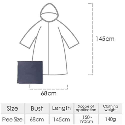 【Perfetto per la maggior parte】 Lunghezza del tessuto: 120 cm, Larghezza del torace: 70 cm, Lunghezza manica: 75 cm, Grande lunghezza alle maniche e fino alle gambe. Il poncho antipioggia unisex si adatta meglio, perfetto per uomini, donne, ragazzi, ragazze.