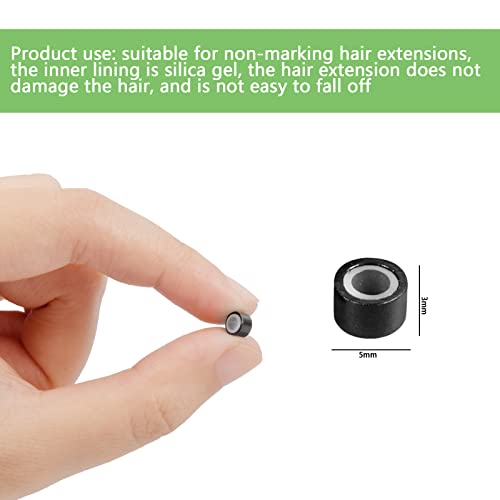 【Dimensioni del prodotto】 Le dimensioni delle estensioni dei capelli con perline hanno un diametro di 5 mm all'esterno, 3 mm all'interno e 3 mm di altezza. Le dimensioni compatte e il colore nero consentono loro di attaccarsi facilmente e in modo invisibile ai capelli, donando ai tuoi capelli un aspetto più naturale e fluente.