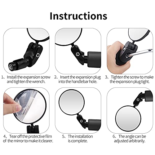 【Specchio convesso in vetro】 Lo specchio per mountain bike presenta lo specchio convesso con il suo ampio campo visivo. Con una pellicola protettiva sullo specchietto retrovisore della bici, può proteggere lo specchietto dai graffi durante il trasporto. Si prega di rimuovere la pellicola protettiva sulla superficie prima di utilizzare questo specchio.