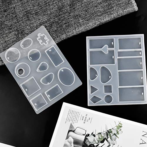 Jinlaili 2 Pezzi Stampi in Resina Epossidica, Stampo in Silicone per Gioielli, Stampi in Resina per Pendenti con Fori, Artigianato Stampi in Silicone per DIY Gioielli Collana Orecchini Portachiavi