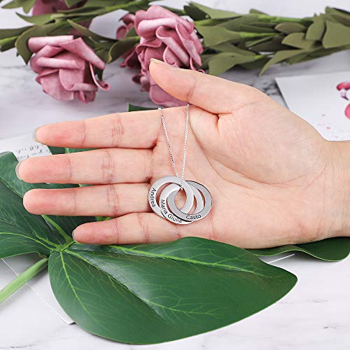 Jinlinjew Collana russa a tre anelli con incisione argento oro rosa oro - regalo personalizzato e su misura per la mamma