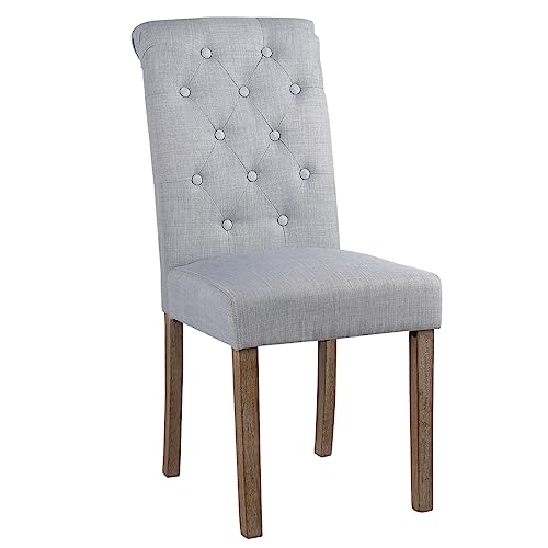 JINPALAY Set 2 pezzi Sedie Sala da Pranzo Sedie Cucina Imbottite Grigio Sedia in Tessuto Eleganti Gambe in Legno con Alto Schienale Moderne (2)