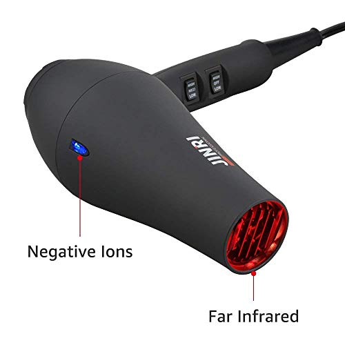 Jinri 1800W AC Asciugacapelli Professionale Silenzioso, Phon per Capelli con lontano infrarossi, Tecnologia a Ioni per un'Asciugatura Rapida e Donne(Nero)