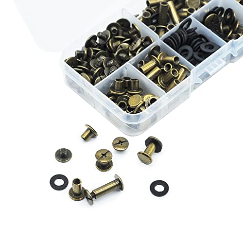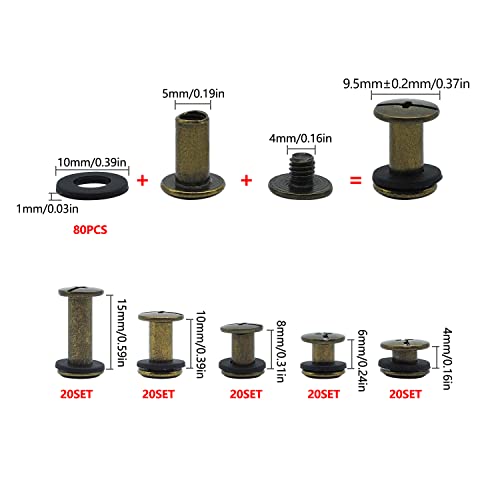 JINTANG 100 Set di Viti Chicago per Rilegatura, Kit di Rivetti a Vite 4/6/8/10/15 mm per Cintura in Pelle, Chiusure a Bottone Rivetti Chicago per Cuoio, Bottoni per Artigianato in Pelle Fai Da Te