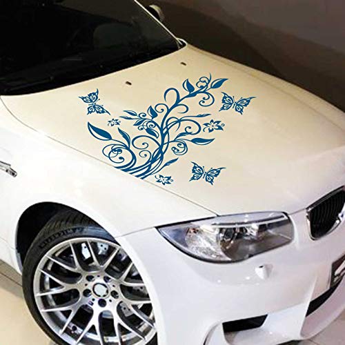 JINTORA Adesivi - Adesivo per paraurti Tendril Floreale + 3 Farfalle 77cm x 50cm Segnale Blu - Automobile di Finestra Posteriore di Messa a Punto Stile Auto