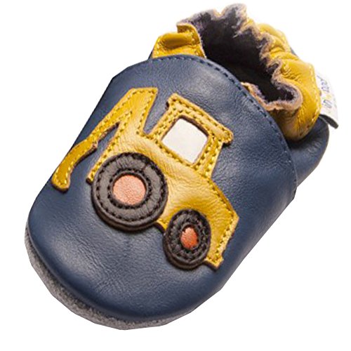 Jinwood designed by amsomo - Scarpe da bambino in diversi modelli, vera pelle, suola morbida Taglie: 17/19-35/36., Multicolore (Excavator Oceanblue - Mini scarpe), 26/27 EU