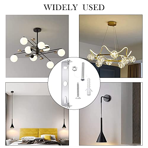 Materiale Realizzato in metallo e con tecnologia galvanica di alta qualità. La superficie è zincata, liscia, antiruggine, resistente alla corrosione, stabile e durevole. invulnerabile a qualsiasi lampadario. Il supporto per piastra a soffitto è realizzato in metallo solido, duro e durevole, due fori per viti su ciascun lato, con vite e tappo di espansione.