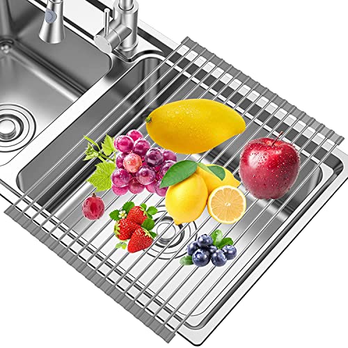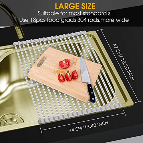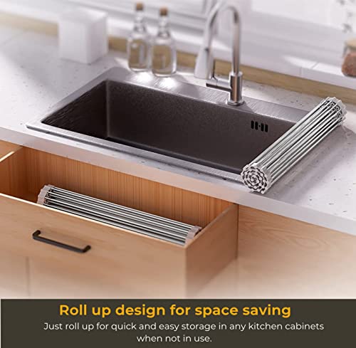 JINYOMFLY Scolapiatti da Appoggio per Lavello, Scolapiatti Pieghevole Inox, Scolapiatti per Lavandino, Scolapiatti Arrotolabile per Asciugare Frutta, Verdura e Piatti, 47x34CM