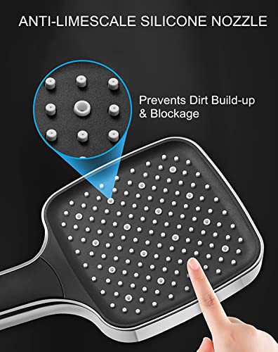 【FACILE DA PULIRE E INSTALLARE】La soffione doccia anticalcare è dotata di ugelli in silicone anticalcare. Basta pulirla con un asciugamano o una spugna per risparmiare tempo e fatica. Del universale soffione economico con attacco G1/2, questo soffione si adatta a qualsiasi braccio doccia standard. L'installazione richiede solo pochi minuti e non necessita di attrezzi.