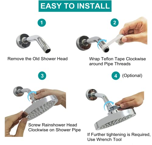 【INSTALLAZIONE SENZA ATTREZZI】Soffione universale con filettatura G1/2 "può essere fissata a qualsiasi braccio doccia standard (BRACCIO DOCCIA NON INCLUSO) sulla parete o sul soffitto. Il nostro soffione doccia fisso può essere installato facilmente e rapidamente in 5 minuti, senza bisogno di attrezzi.