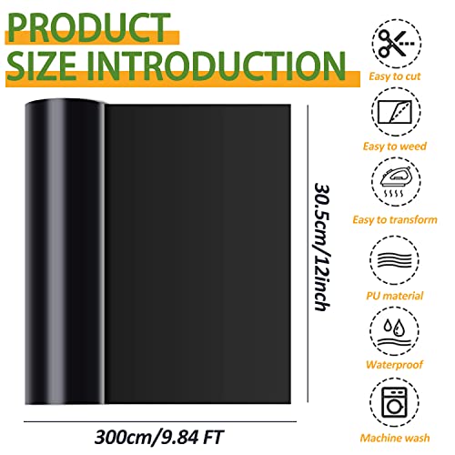 JINYOMFLY Vinile Termoadesivo per Tessuti - 30,5 cm x 300 cm Rotolo di Vinile Termoadesivo per Plotter,Calore Vinile Rotolo per Cricut, Heat Transfer Vinile Rotolo per DIY T-Shirt,Indumenti (Nero)