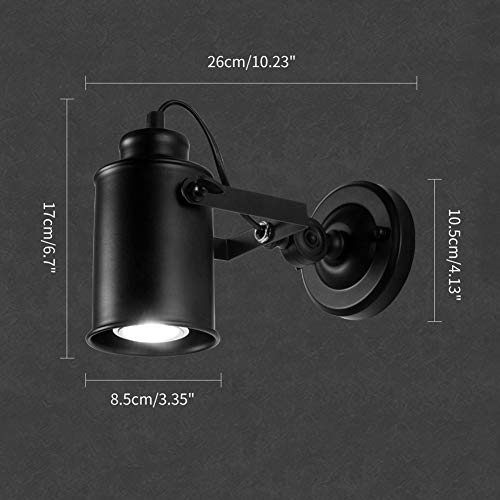 JINYU Lampada da parete in stile vintage industriale,stile rustico,regolabile,lampada da parete a soffitto,plafoniera,luce moderna,faretto notturno,paralume in metallo color Nero(Niente Lampadine)