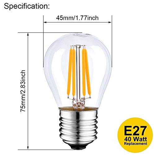 Jiotouhu Lampadine a filamento LED E27,4W G45, lampadine a sfera da golf, attacco Edison classico E27, in vetro trasparente bianco caldo 2700 K, non dimmerabile, luci stringa (confezione da 10)