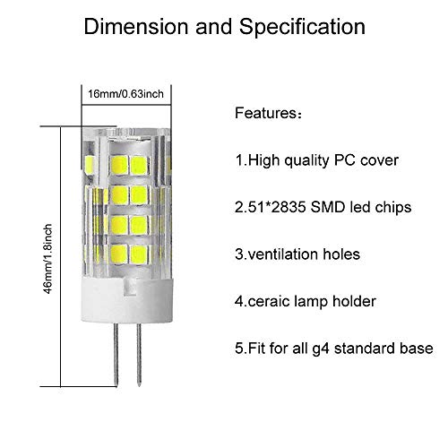 Jiotouhu 5X G4 LED Lampadine 5W LED Luce Lampada 51 SMD 2835LEDs Bianco Freddo 6000K LED Lampadina 500LM Equivalente a 50W Alogena AC/DC12V