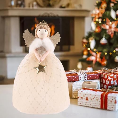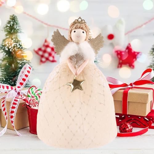 【Topper per albero di Natale】: la parte superiore del simpatico albero di Natale è decorata con stelle di bambole angeliche e attaccata all'albero, aggiungendo una luce brillante al tuo albero di Natale.