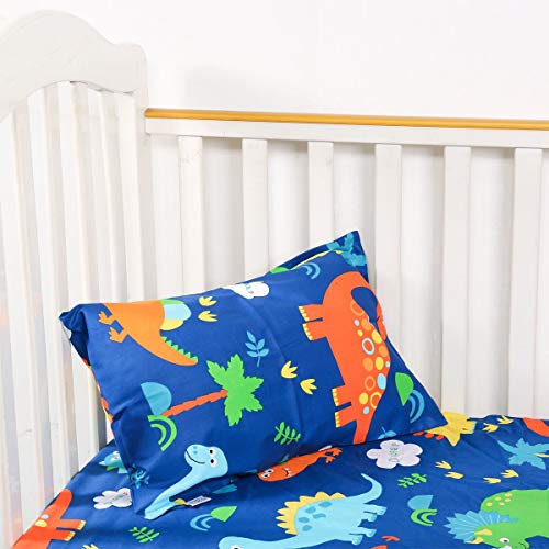 Jisen - Federe per cuscini per bambini, confezione da 2, in 100% cotone naturale, per dormire, con chiusura a busta, 40 x 60 cm, dinosauro blu