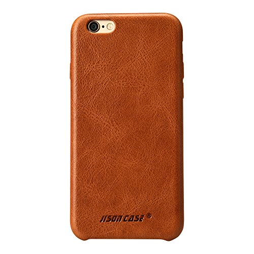 Jisoncase Premium in vera pelle elegante Cover posteriore rigida sottile custodia a scatto per iPhone 6/6S Plus js-i6u-01 a10, Pelle, Brown, iPhone 6/6S