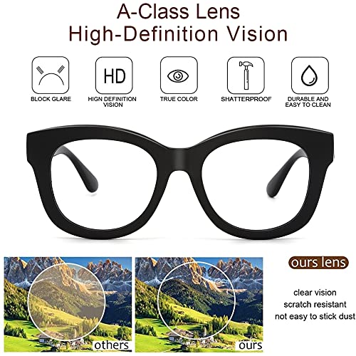 JiSoo Lettori oversize del progettista delle donne/uomini degli occhiali da lettura, grandi occhiali rotondi spessi da lettura delle signore, E-nero