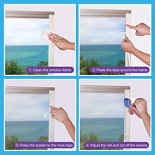 FACILE DA INSTALLARE E RIMUOVERE: facile installare la zanzariera senza forare. I nastri aggiornati possono essere incollati saldamente sulla superficie pulita del telaio della finestra. La sottile rete antimosche può essere tagliata per adattarla alle dimensioni della finestra con il taglierino e appesa alle strisce di velcro. Può anche essere facilmente rimosso quando non è necessario. È lavabile e riutilizzabile, economico e pratico.