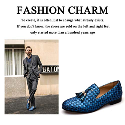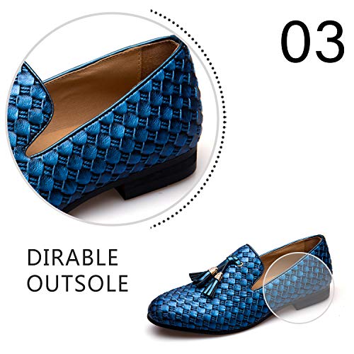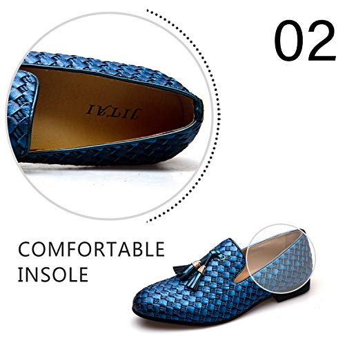 JITAI Gli Uomini Retro Pelle bv Ricami Nobile Scarpe Scivolare su Mocassino Fumare Scarpetta Tassel Mocassini, Blu 07, 41 EU (8 UK)