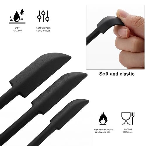 Jitnga 3 Pezzi Mini Spatola Raschietto Per Pasta Stretto Flessibile Piccolo Set In Silicone Pezzo Piccola Spatola Di Gomma Spatola Per Trucco Spatola Per Cucina Per Bellezza E Cucina (Nero)