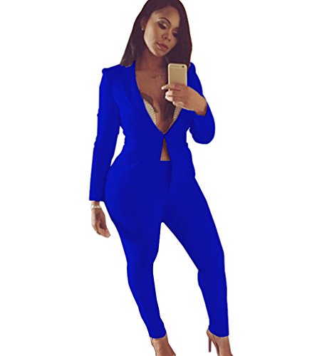 Jitong Donna Tailleur Pantalone Maniche Lunghe Cappotto Tuta Blazer Top 2 Pezzi Slim Fit Giacca e Pantaloni Zaffiro L