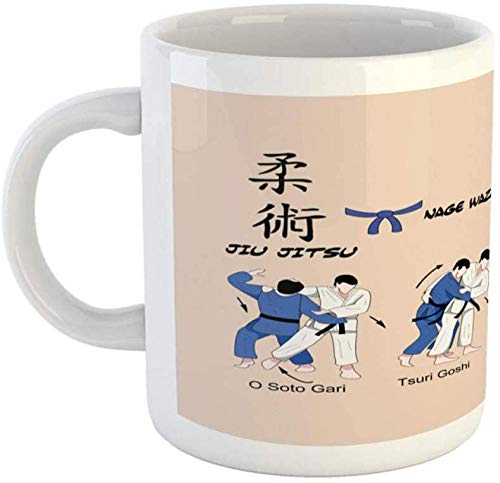 Jiu-Jitsu Cup Arti Marziali Difesa Tecnica Sport Pratica Tema Aikido Karate Judo Stampa Ceramica Tazza di Caffè Acqua Tea Dri-White_301-400Ml-White_301-400Ml