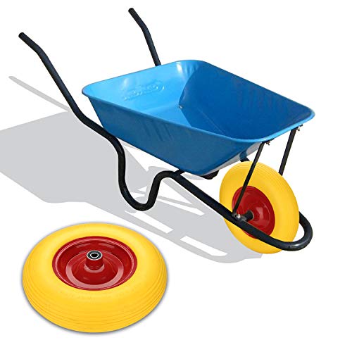 A prova di foratura: la ruota per carriola con l'asse in dotazione è possibile montare immediatamente la ruota sulla carriola e iniziare. Lo pneumatico ha una larghezza extra per ridurre il rischio di ribaltamento di 95 mm. Che si tratti di chiodi, vetro, spine o schegge, questa ruota in gomma piena non vi deluderà.