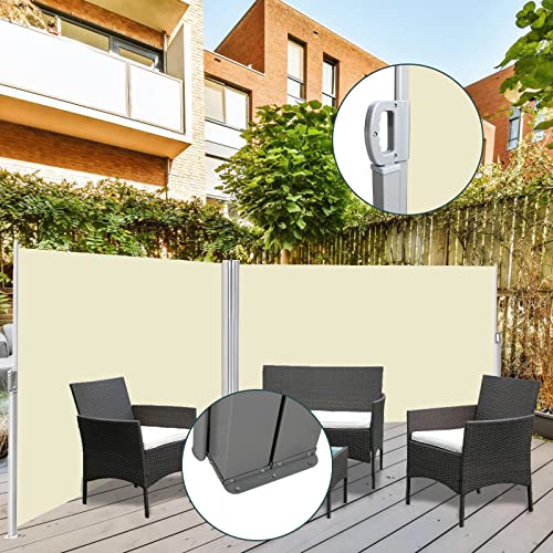 Jiubiaz Tenda da sole doppia, 180 x 600 cm, colore beige, allungabile, con supporto a pavimento, retrattile, per balcone, giardino, terrazza, protezione da vista da giardino