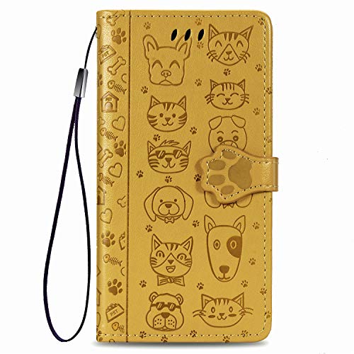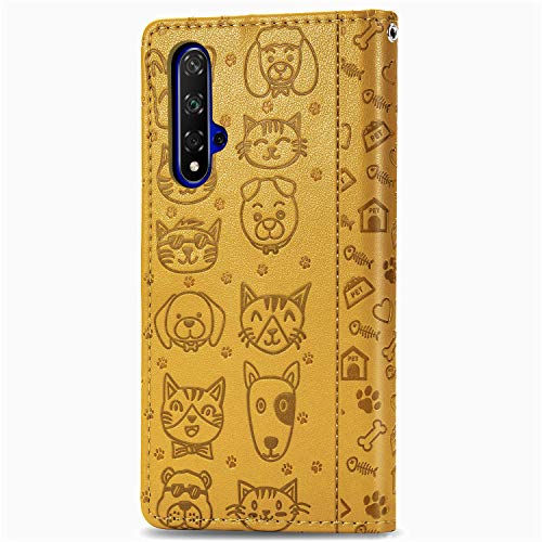 JIUNINE Cover Honor 20 / Huawei Nova 5T, Custodia Libro in Pelle Portafoglio Flip Case Antiurto con Modello di Cane e Gatto [Porta Carte] [Magnetica] [Interno TPU] per Honor 20, Giallo