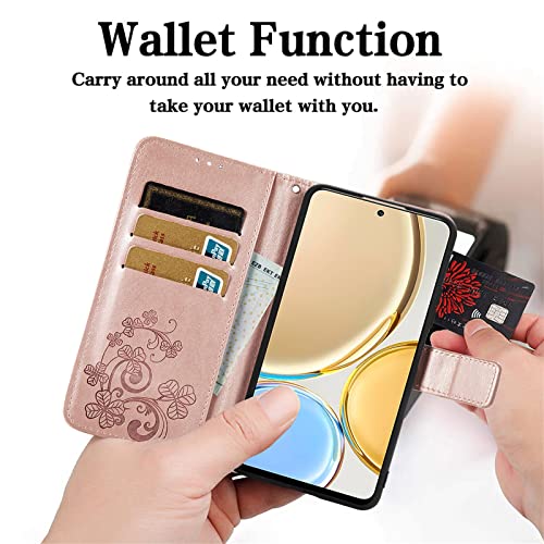 JIUNINE Cover per Honor Magic 4 Lite, Custodia Libro in Pelle Portafoglio Case Flip Antiurto con Disegni in Rilievo [Porta Carte] [Magnetica] [Interno TPU] per Honor Magic4 Lite, Oro rosa