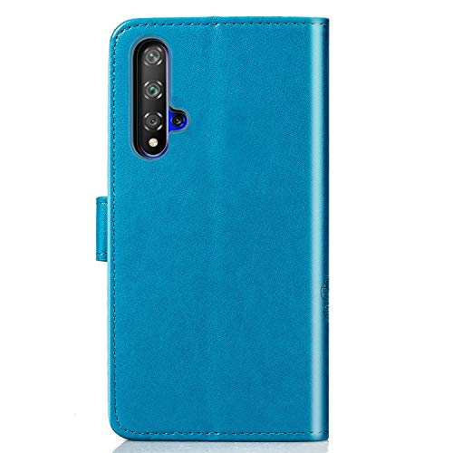 JIUNINE Cover Huawei Nova 5T / Honor 20, Custodia Libro in Pelle Portafoglio Case Flip Antiurto con Disegni in Rilievo [Porta Carte] [Magnetica] [Interno TPU] per Huawei Nova 5T Smartphone, Blu