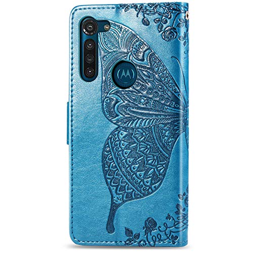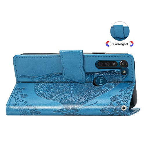 JIUNINE Cover Motorola Moto G8 Power, Custodia Libro in Pelle Portafoglio Case Flip Antiurto con Disegni di Farfalla [Porta Carte] [Magnetica] [Interno TPU] per Motorola Moto G8 Power, Blu