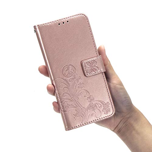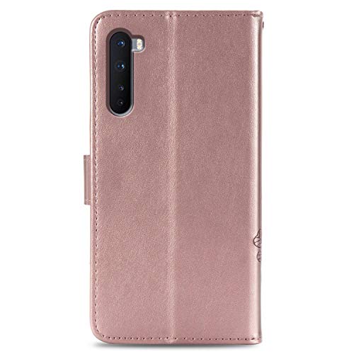 JIUNINE Cover OnePlus Nord, Custodia Libro in Pelle Portafoglio Case Flip Antiurto con Disegni in Rilievo [Porta Carte] [Magnetica] [Interno TPU] per OnePlus Nord, Oro rosa