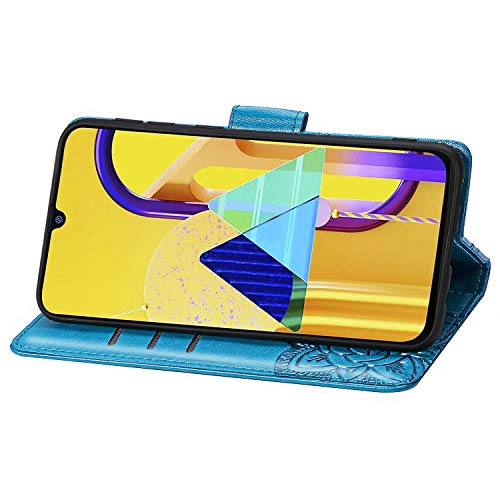 JIUNINE Cover Samsung Galaxy M30s / M21, Custodia Libro in Pelle Portafoglio Case Flip Antiurto con Disegni di Farfalla [Porta Carte] [Magnetica] [Interno TPU] per Samsung Galaxy M30s, Blu