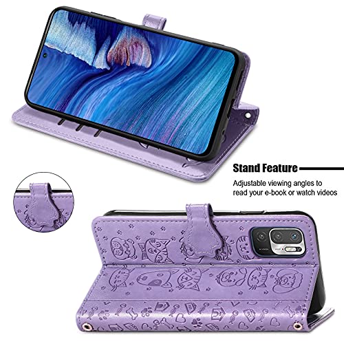 JIUNINE Cover Xiaomi Redmi Note 10 5G / Poco M3 Pro, Custodia Libro in Pelle Portafoglio Flip Case Antiurto con Modello di Cane e Gatto [Porta Carte] [Magnetica] per Redmi Note 10 5G, Viola